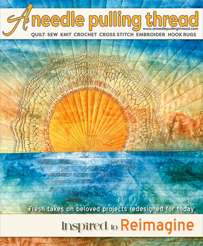 Issue 71 of A Needle Pulling Thread celebrates the theme Inspired to Reimagine, a creative journey where designers return to earlier projects and reinvent them with a fresh vision. Across quilting, knitting, cross stitch, embroidery, rug hooking, crochet, and punchneedle, contributors rediscover their original ideas and transform them using new techniques, updated tools, modern materials, and evolved artistic confidence. From scrappy quilts made from leftover blocks to refined embroidery, scaled-down cross-stitch favourites, reinvented art quilts, refreshed accessories, and updated sewing designs, each project offers a story of growth and renewed inspiration. This issue invites makers to revisit their own past work and discover what it can become today.