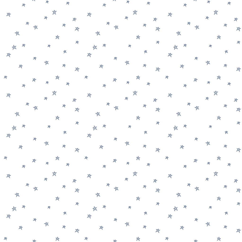 This charming fabric features a delightful design of small blue stars scattered across a white background, creating a whimsical and airy feel. Perfect for various sewing projects, the pattern evokes a playful yet elegant aesthetic, suitable for both casual and more refined creations. The stars are arranged in a seemingly random yet balanced pattern, adding a touch of magic to any fabric project.