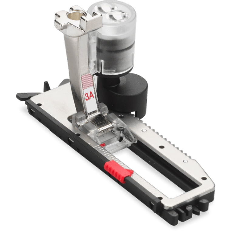 With Buttonhole Foot with Slide #3A, a sensor on the presser foot determines the buttonhole length and relays the dimensions to the sewing machine.This allows perfectly identical buttonholes to be sewn again, until the size is changed. Buttonhole Foot with Slide #3A is therefore ideal for sewing button plackets on garments and home furnishings.