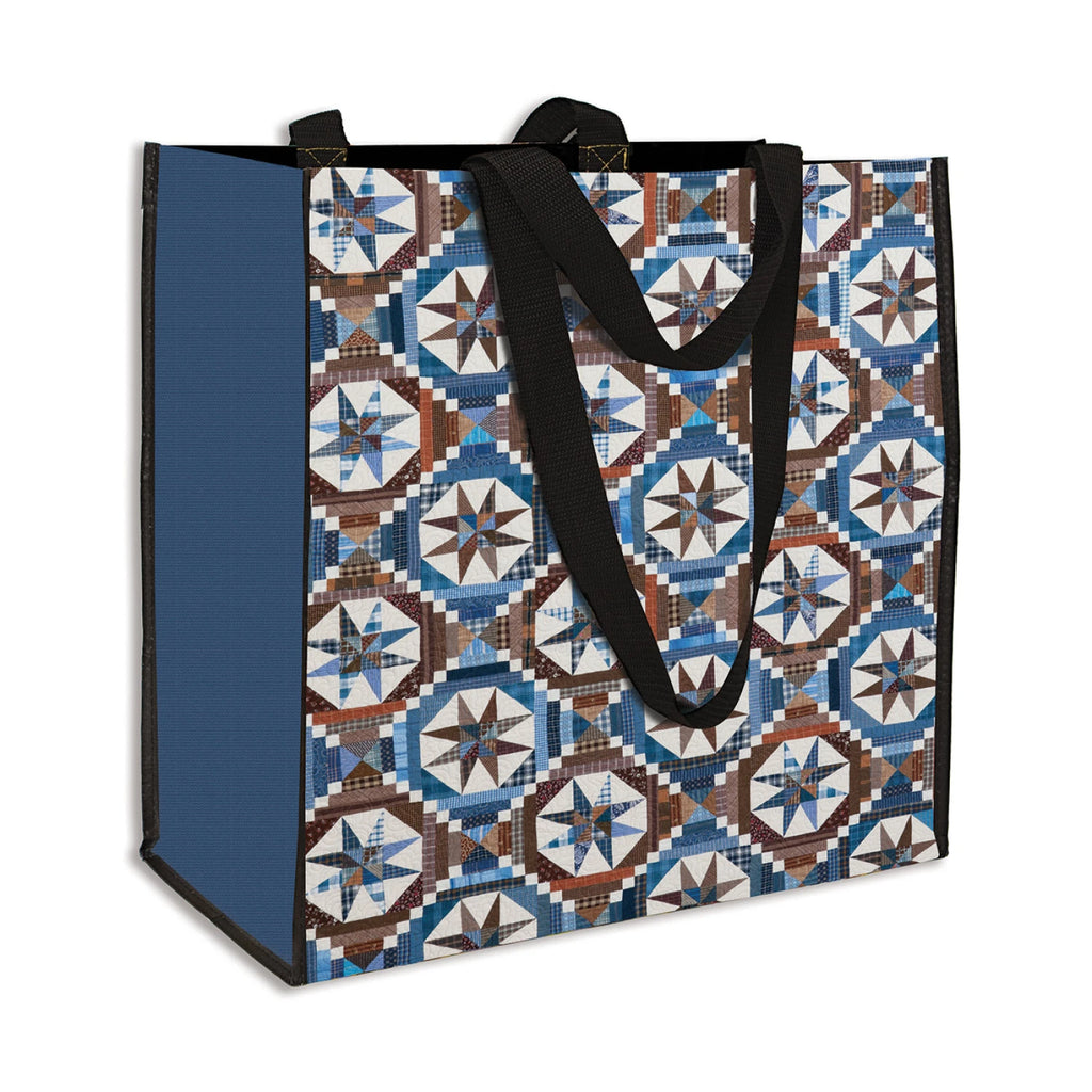 Featuring the Smith Mountain Morning quilt from Scraps & Shirttails by internationally known scrap quilter Bonnie K. Hunter, this environmentally conscious tote is made from recycled water bottles.