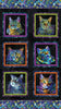 This vibrant 100% cotton fabric panel features an enchanting array of six cat portraits, each set within a colorful border of bright purples, oranges, and greens. The cats are depicted in a stunning, artistic style with a mix of vivid colors that give each portrait a unique, almost magical quality. The design is framed by a sparkling border that enhances the mystical theme of the panel, making it a standout choice for creating eye-catching quilts, wall hangings, or any project that celebrates feline beauty and artistic flair.