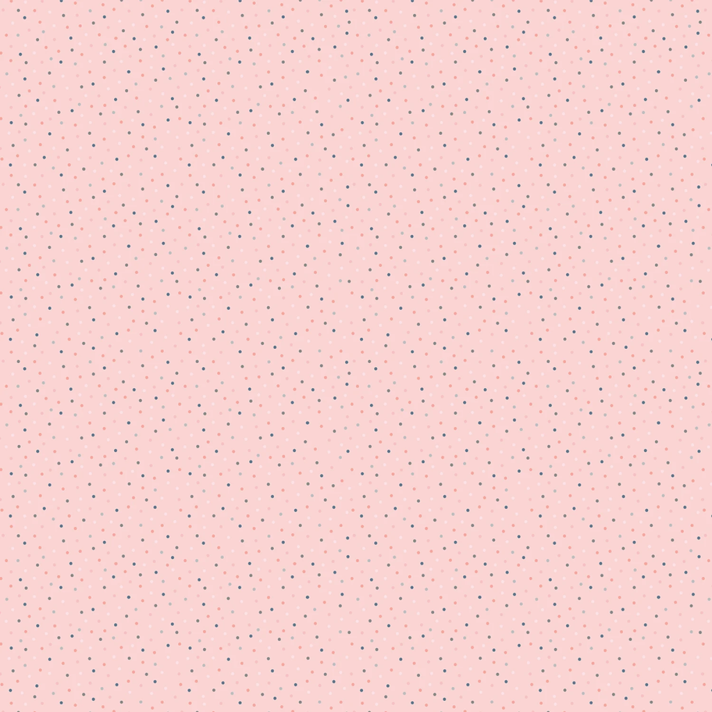 This fabric features a charming light pink background adorned with a delicate pattern of tiny blue polka dots, reminiscent of a gentle confetti shower. The design evokes a sense of whimsy and lightness, perfect for projects that require a subtle yet playful touch. Made from 100% cotton, it offers both comfort and durability, making it ideal for a variety of sewing projects from apparel to home decor.