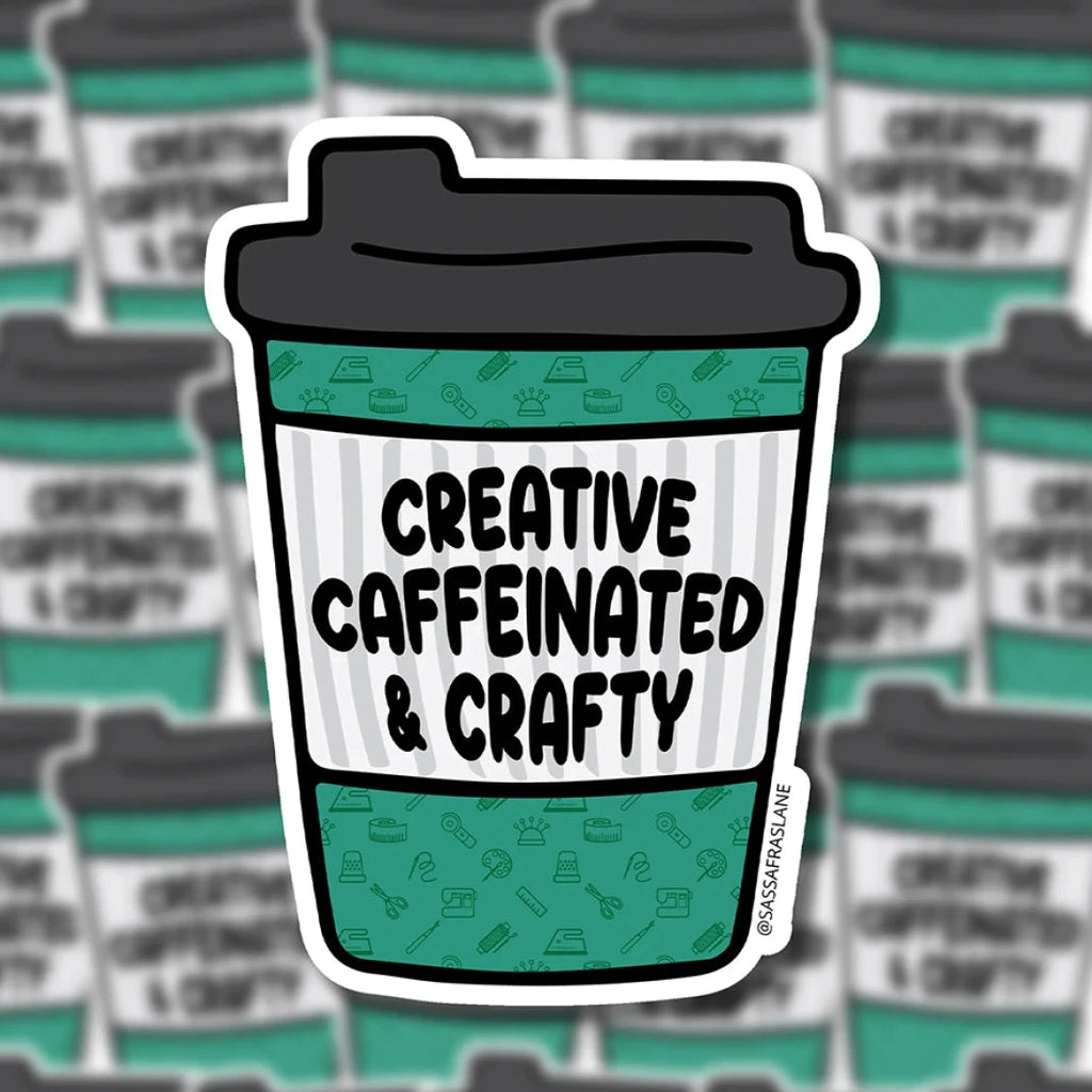 The Creative, Caffeinated & Crafty Coffee Sticker is a to-go coffee cup for all your creative, caffeinated & crafty friends. All our die cut stickers are made of a thick durable vinyl with a protective laminate coating.