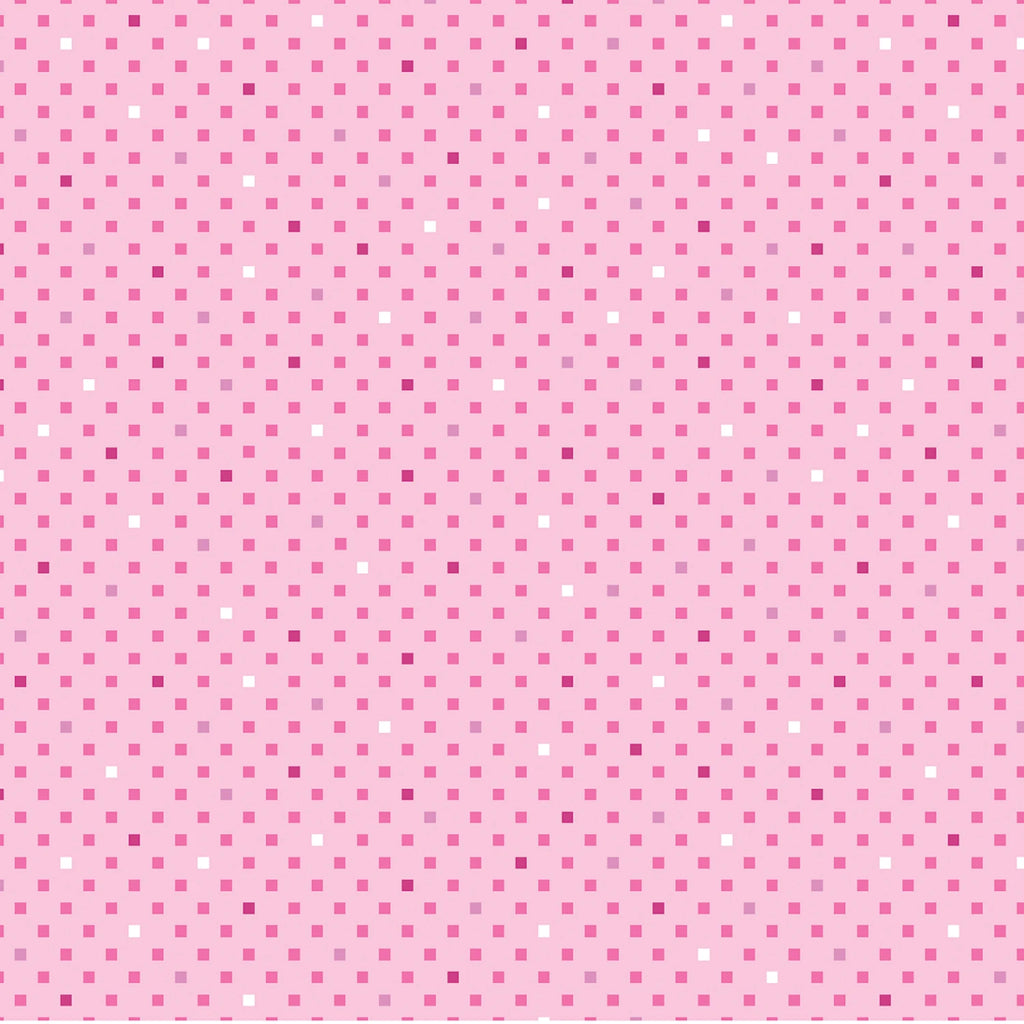 This fabric features a charming pattern of small squares in various shades of pink and white, creating a delightful mosaic effect on a light pink background. The design is both subtle and vibrant, making it versatile for a range of crafting projects from quilting to apparel. The fabric's 100% cotton composition ensures it is soft, breathable, and easy to work with, providing excellent durability and comfort.