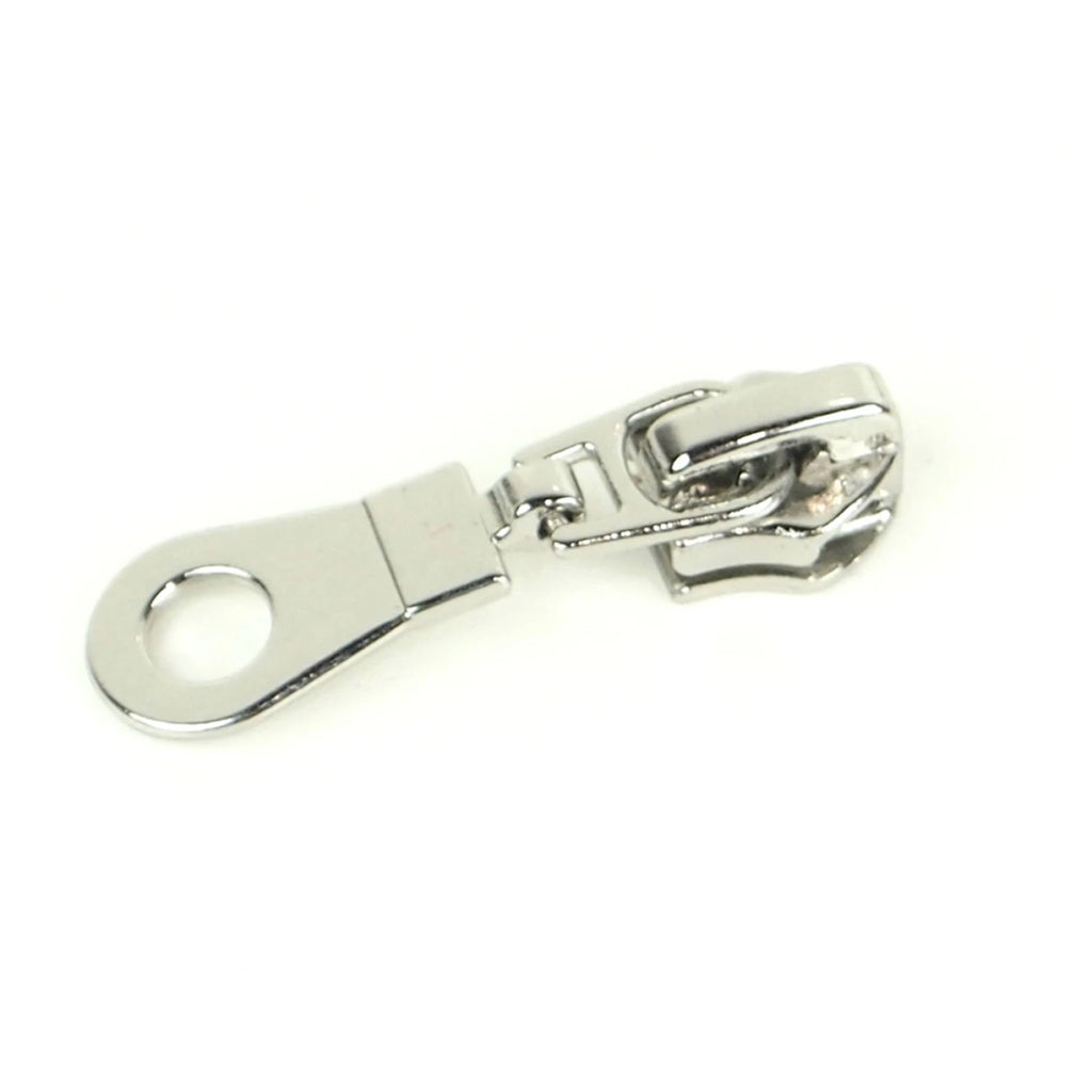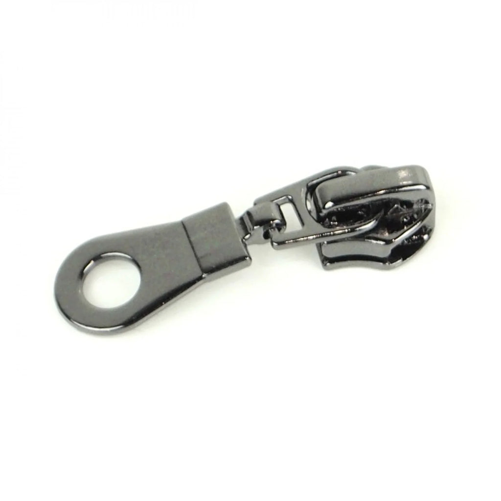 Set of four size #5 zipper pulls for nylon coil. Use with Sallie Tomato Handbag Zippers by the Yard. Make single or double slide zippers with #5 Nylon Coil Handbag Zippers by the Yard. Choose from five glossy finishes including silver, light gold, antique, gunmetal black, and copper.