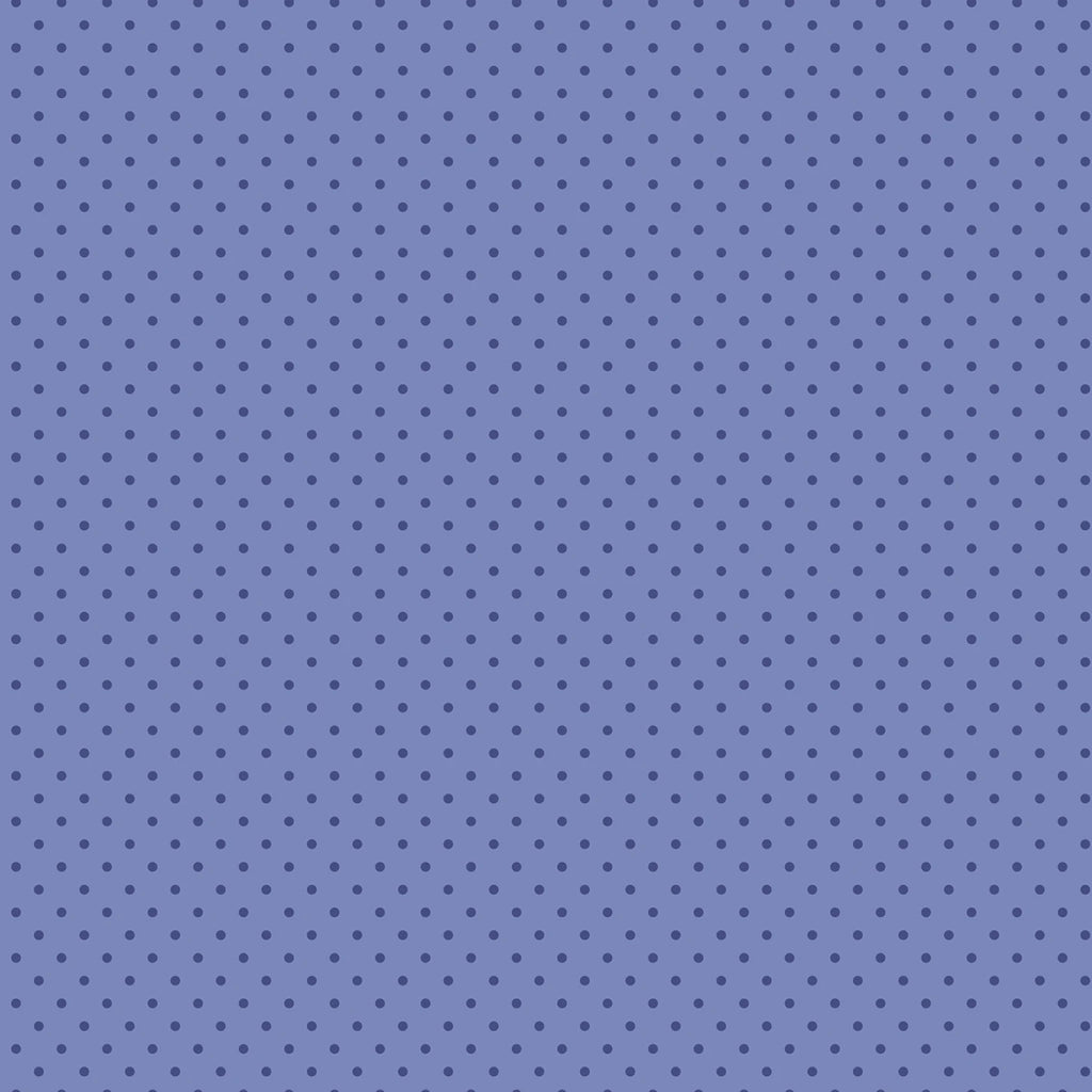 This fabric features a charming design of small, evenly spaced polka dots in a soft periwinkle blue, creating a subtle yet elegant pattern that is perfect for a variety of sewing projects. The polka dots are uniformly distributed, providing a classic look that can be used for both traditional and contemporary designs, enhancing the aesthetic appeal of garments, home decor, or craft projects.