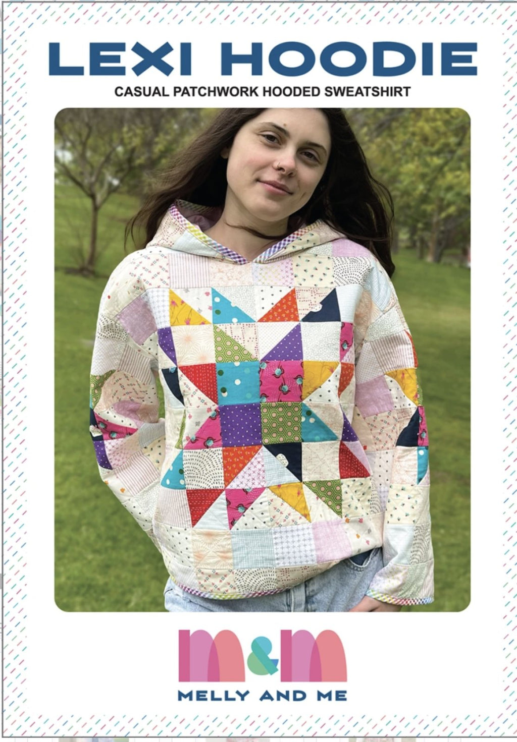 A casual patchwork hooded sweatshirt that combines comfort, creativity, and personal flair in one wearable design. The Lexi Hoodie is constructed with a contrasting combination of low and high-profile fabrics to create an eye-catching pieced star on the front, back, and each sleeve. This combination creates a bold patchwork hoodie with unique style and handmade charm. This pattern is also the perfect scrap-busting project!