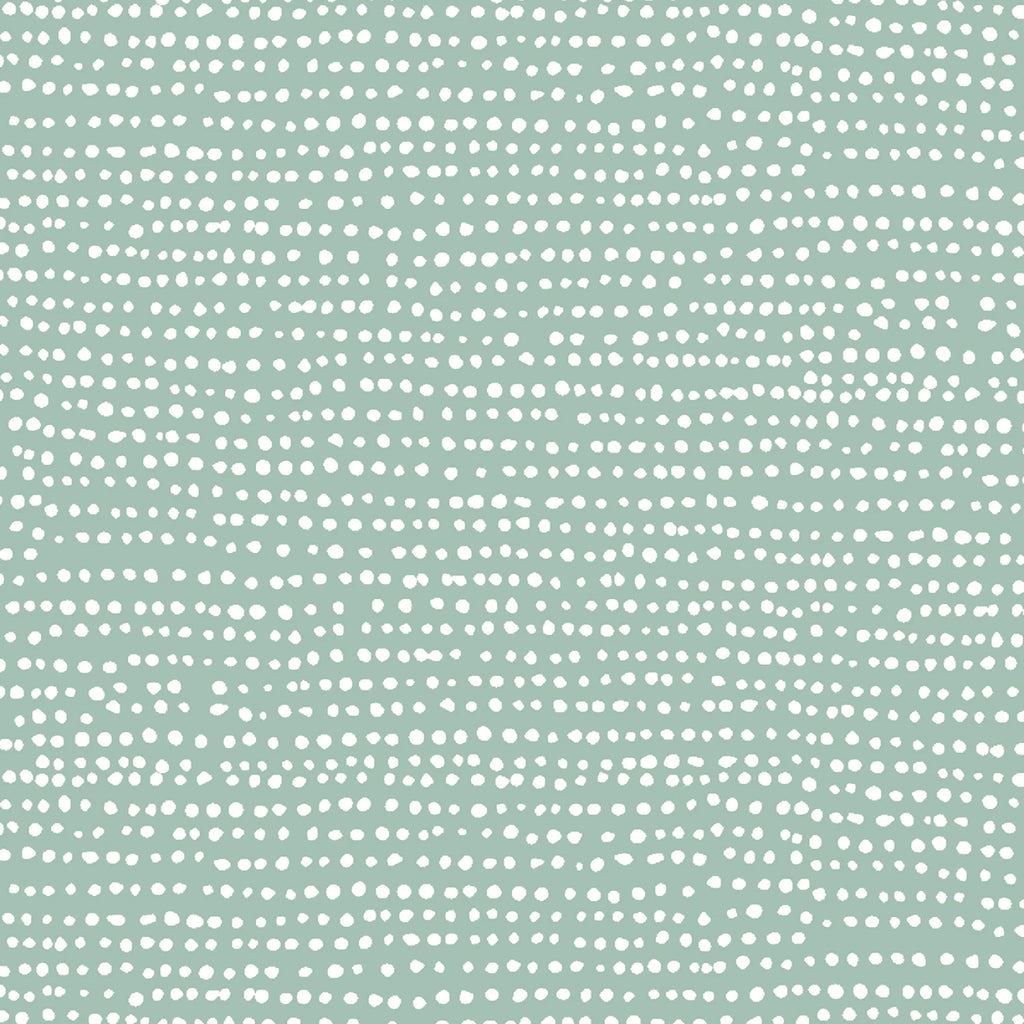This fabric features a serene design with a pattern of white dots scattered across a calming lagoon blue background, evoking the tranquility of a moonlit landscape. The design is simple yet elegant, perfect for creating a peaceful ambiance in any project, from quilting to apparel.