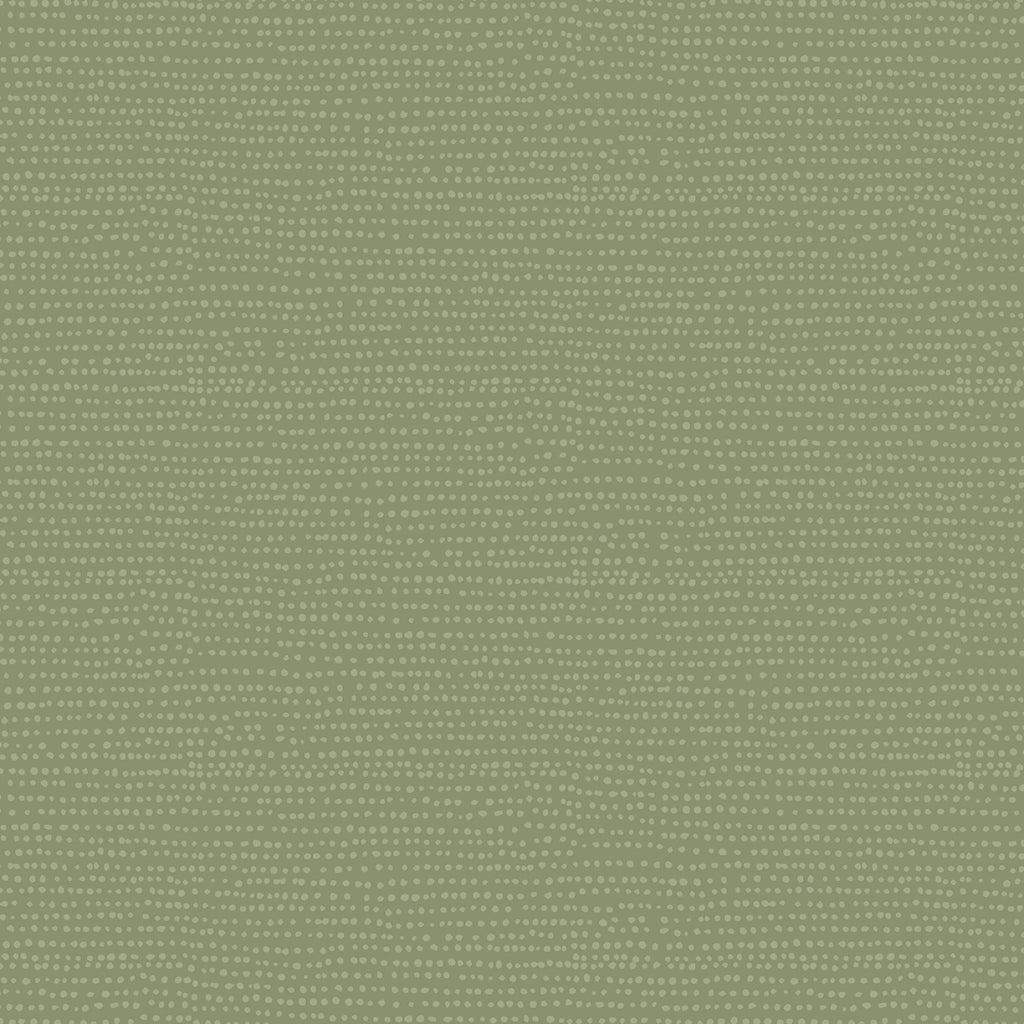 This fabric features a subtle, elegant design with a pattern of small, evenly spaced dots in varying shades of green, creating a moonscape-like texture. The material is soft and breathable, ideal for a variety of sewing projects from apparel to home decor, offering a serene and natural aesthetic.