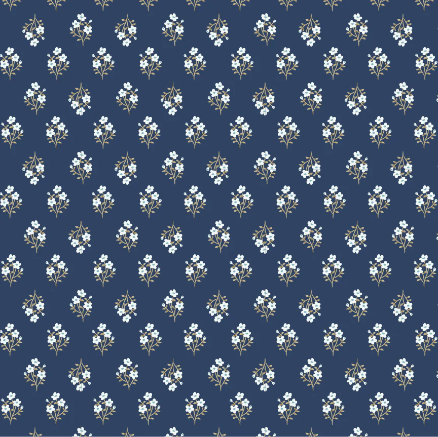 My Darling Deer is inspired by all things in nature. There are so many things that make up this sweet collection, the deer among the meadows of flowers, the tossed wildflowers, the bouquets of flowers, the tiny birds singing among the flowers and the tone-on-tone ferns. The color combination of the soft lavenders into deep plum, navy blue mixed with calming blues and pale hues of pink with cream. This beautiful collection will have you inspired to sew quilts, baby nursery projects and home décor.