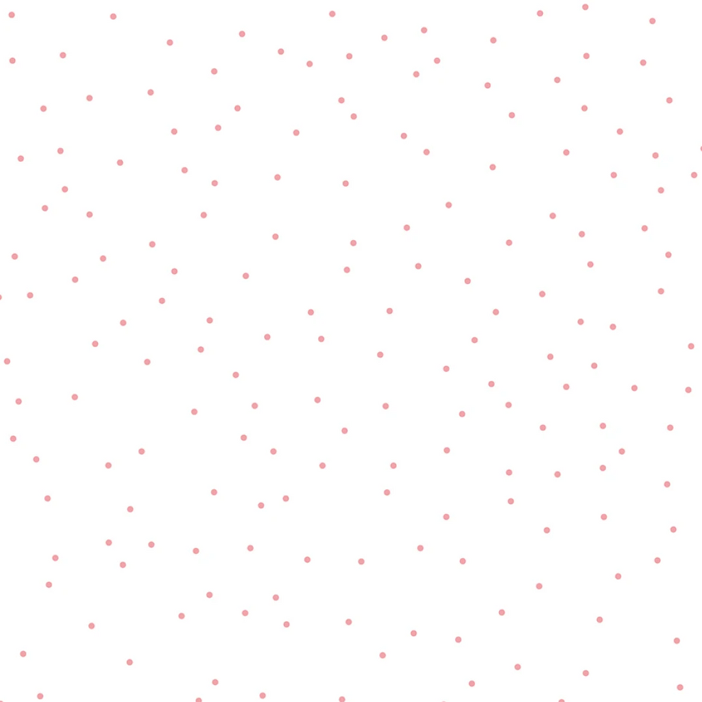 This fabric features a delicate pin dot design in a soft peony color, creating a subtle yet charming pattern that adds a touch of elegance to any project. The design consists of evenly spaced, tiny pink dots on a white background, offering a versatile look suitable for various crafting and sewing applications.