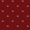 This fabric features a charming design with a rich mahogany red background adorned with a repeating pattern of small, white and brown pointer dogs. The playful yet elegant motif makes it perfect for various crafting projects, from apparel to home decor, adding a touch of countryside charm to any creation.