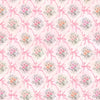 This enchanting fabric features a delicate ballet pink background adorned with a repeating pattern of floral bouquets tied with satin ribbons. The design exudes a romantic and vintage charm, perfect for creating elegant garments, home decor, or special occasion crafts. The floral motifs are detailed with soft pastels, enhancing the fabric's gentle and sophisticated aesthetic.