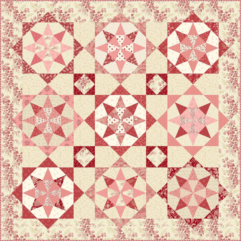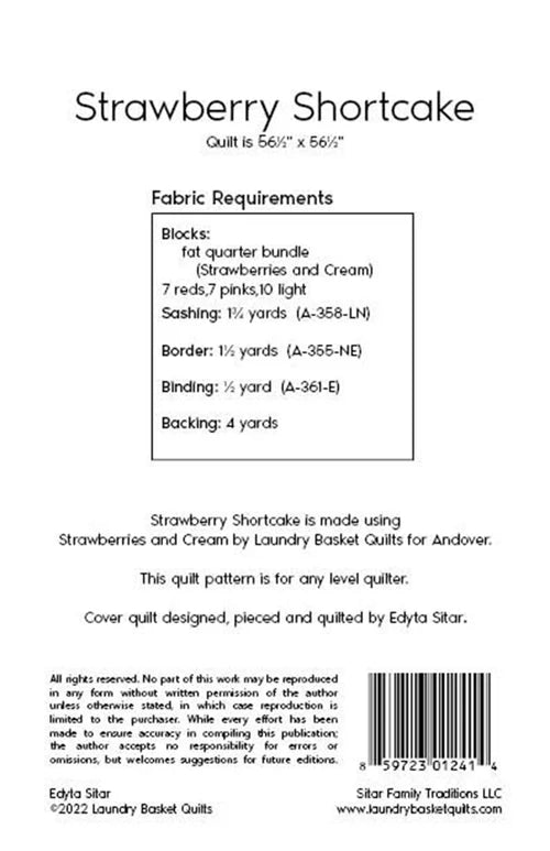 Pieced Quilt Pattern using Laundry Basket Quilts "Strawberries and Cream" fabric collection by Edyta Sitar for Andover. Perfect for any level quilter! Quilt size is 56½" x 56½"