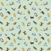 This delightful fabric features a charming array of Winnie the Pooh characters scattered across a soft green background. The design includes beloved characters like Winnie the Pooh, Piglet, Eeyore, Tigger, Owl, and Rabbit, each depicted in various playful poses. The fabric's whimsical pattern makes it perfect for a variety of projects, from children's clothing to home decor, bringing a touch of classic nostalgia to any creation.